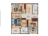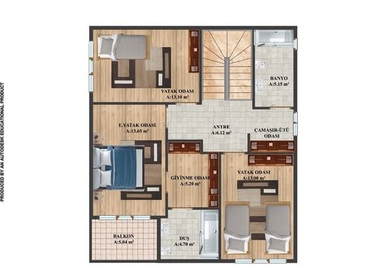 3 banyo 2 çocuk odası bir ebeveyn yatak odası ve giyinme odası ebeveyn banyosu ütü odası alt katta kapalı mutfak salon oturma odası WC
